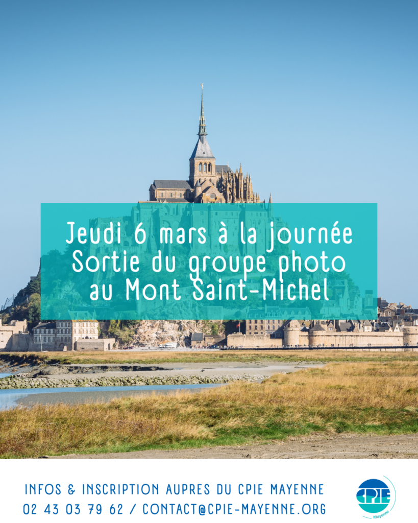 📸 Jean, bénévole du groupe photo des adhérents du CPIE Mayenne vous propose une sortie au Mont Saint-Michel. Que vous soyez simple amateur de photographie ou expert, profitez de cette sortie pour prendre le temps d'observer et photographier ses richesses naturelles sans aucun esprit de compétition !