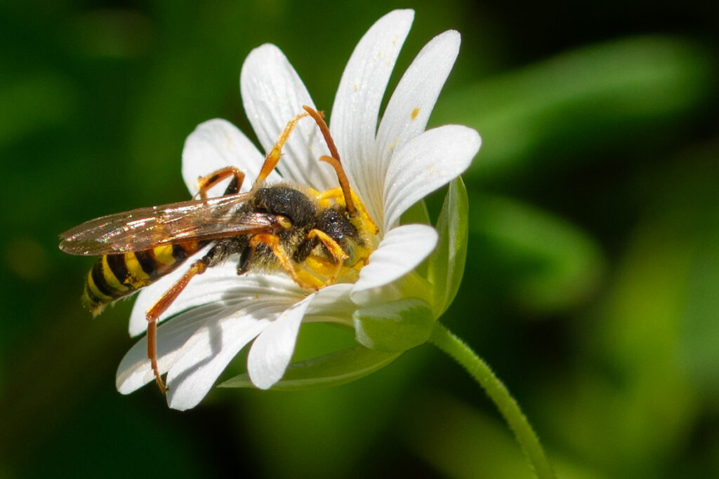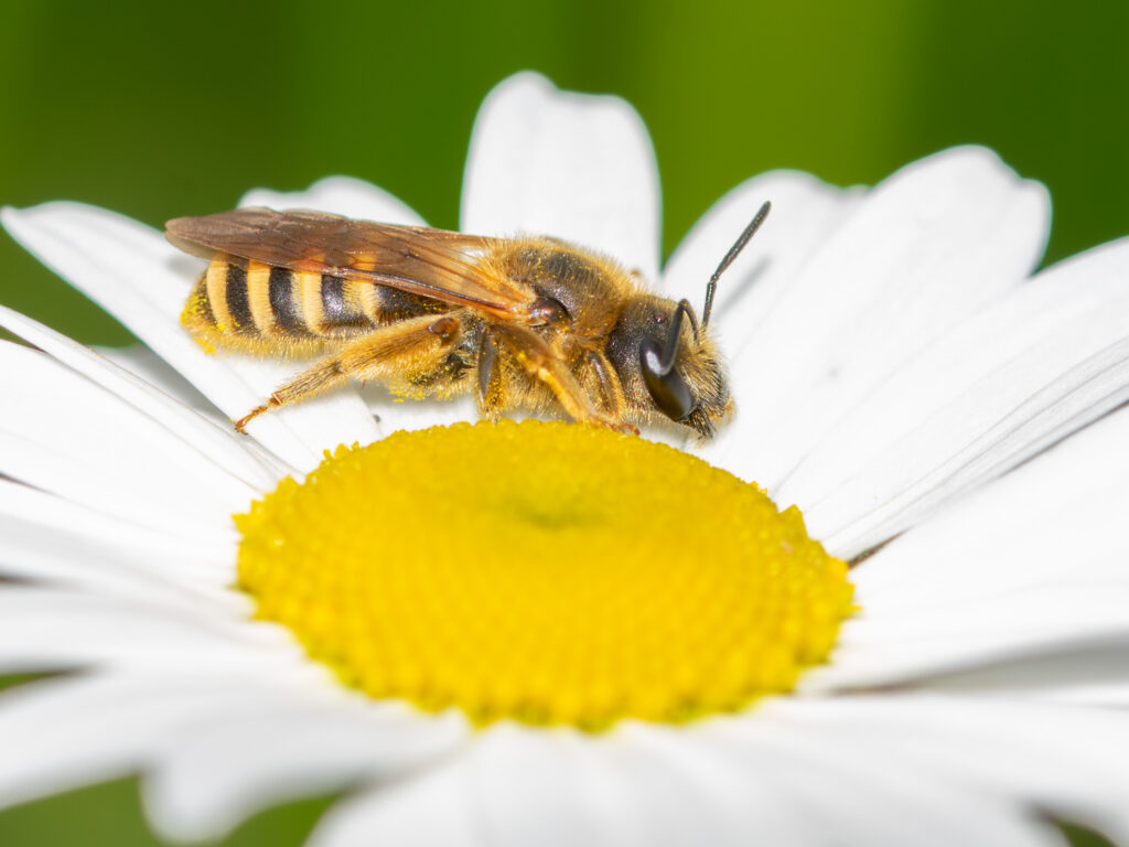 Les abeilles sauvages font partie des pollinisateurs, un groupe d’insectes essentiels au bon fonctionnement des écosystèmes (90 % des plantes dans le monde en dépendent, 84 % des plantes cultivées en Europe également).