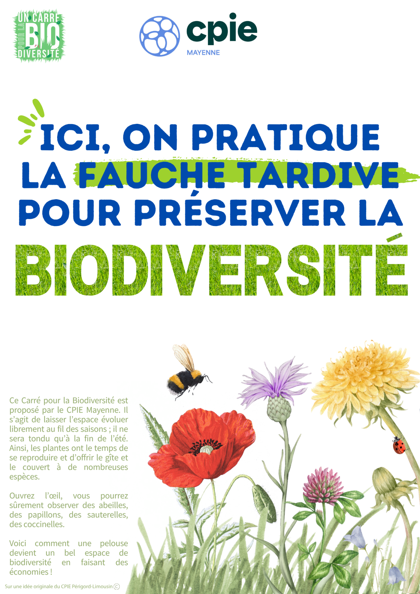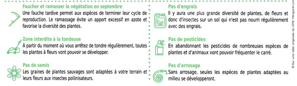 Il s'agit d’inviter tous les publics disposant d’un espace enherbé à la préservation et à l’observation de la « nature ordinaire ». Le principe consiste à ne pas intervenir pendant toute une saison sur un espace enherbé. Cela permet à la flore naturelle de se développer et aux espèces animales qui y sont liées, de s’installer.